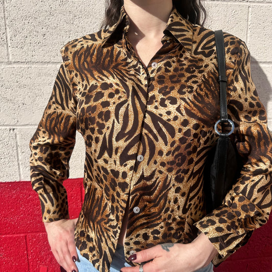 animal print long sleeve button up blouse 🐅
